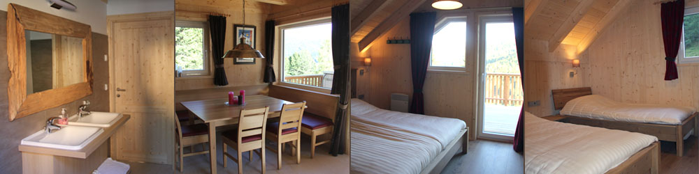 Het chalet is geschikt voor maximaal 8 personen en compleet ingericht en voorzien van alle gemakken incl. wifi, vloerverwarming, satelliet TV, hot-tub, oven, magnetron, buiten BBQ, etc. Uw beddengoed en handdoeken kunt u erbij bestellen. U kunt gebruik maken van de broodjes bezorg service van de bakker en er is de mogelijkheid in een restaurant (op 50 meter afstand) te ontbijten of eten te laten bezorgen aan huis. Een verplichte eind schoonmaak wordt doorberekend.